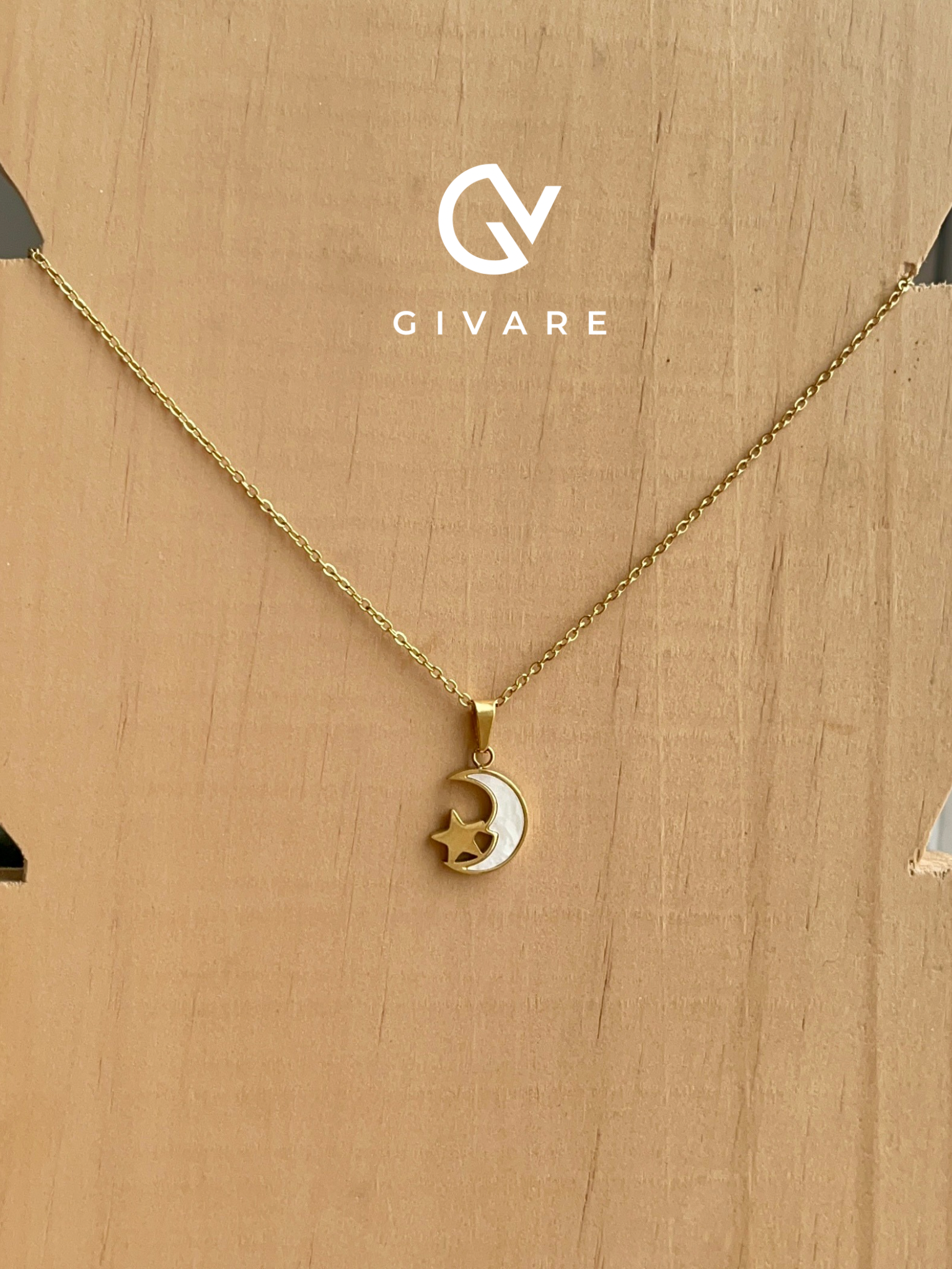 Su delicado dije de luna acompañado de una estrella aporta un toque único y celestial a cualquier atuendo. Perfecta para uso diario o eventos especiales, esta joya combina estilo y calidad para realzar tu personalidad con un encanto sutil y moderno.